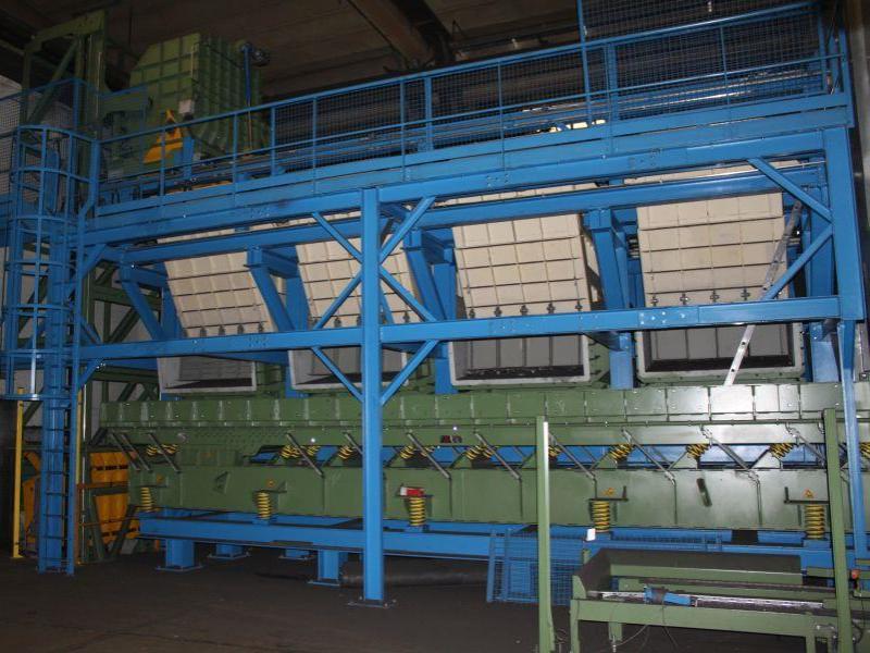 The second type should be used directly after the molding line for sand and/or casting transport, before the shake out. This is the best vibratory conveyor machine if you want to take out the castings by manipulator or if you have to cross a distance before the shake out. A further application is to feed very heavy castings diretly after the shake out.